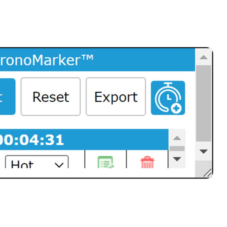 Easily mark notable takes with a simple click.Move and resize ChronoMarker™ to a convenient spot in your browser window out of the way of your work or broadcast interface.