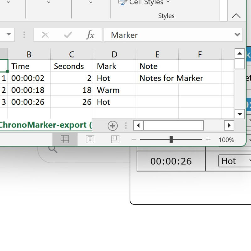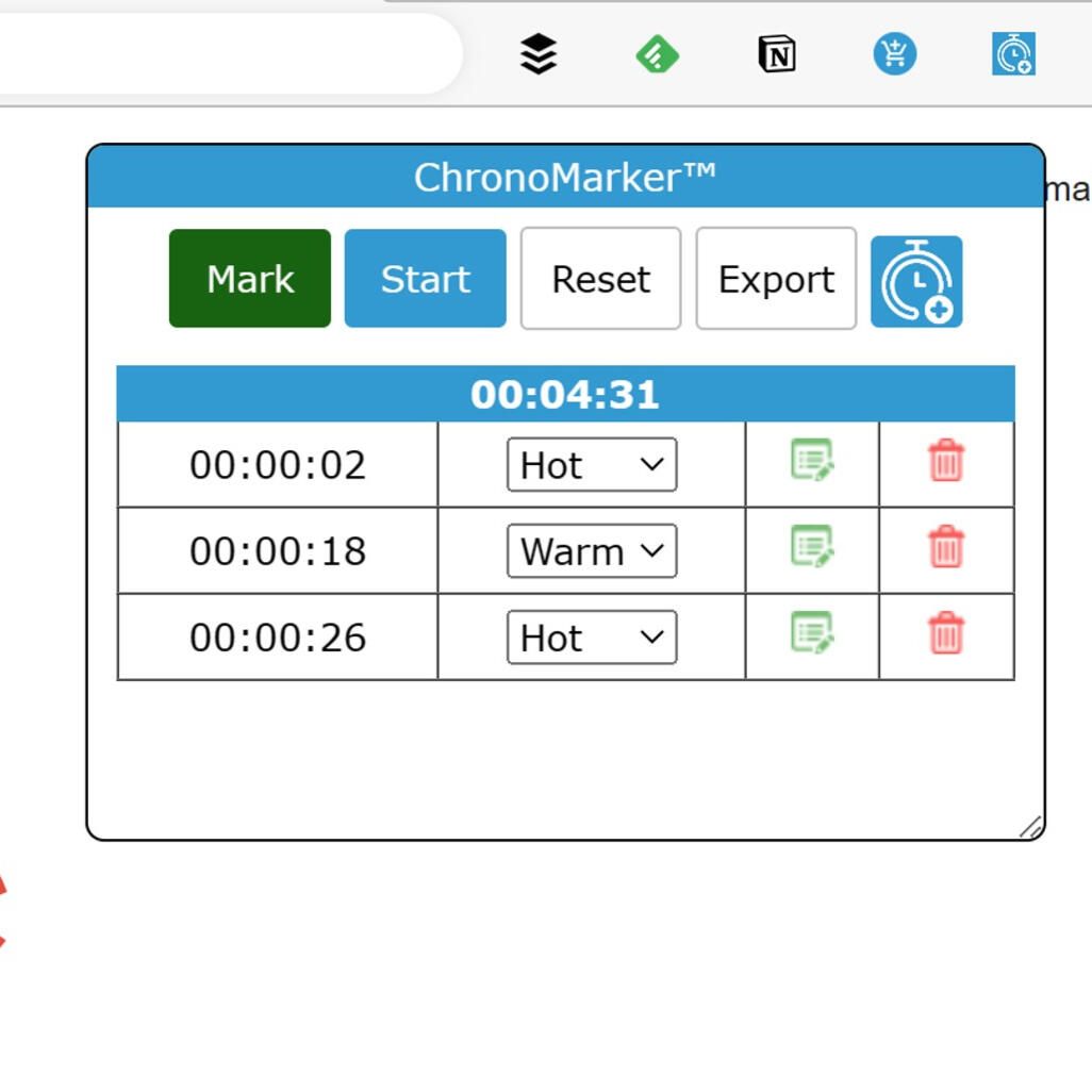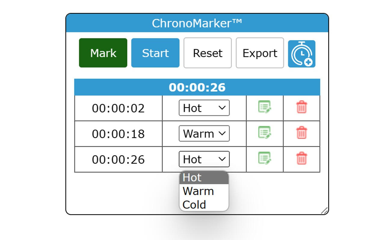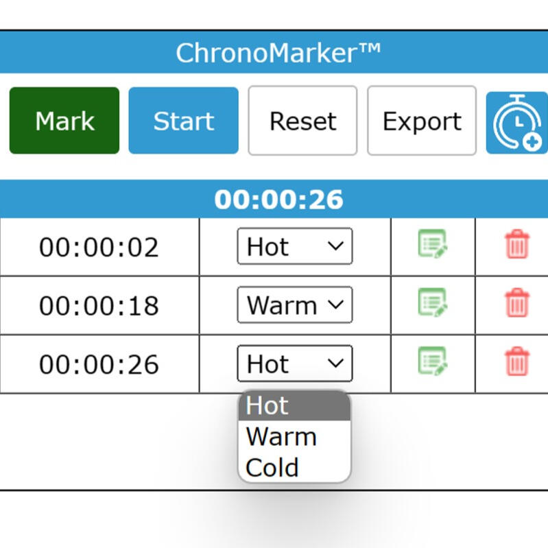 Once you're done, export select or all markers with their times, temperature, and notes into a CSV.Use your export to fast-track to the right takes in your stream.Save hours from having to watch/listen to the entire recording again.